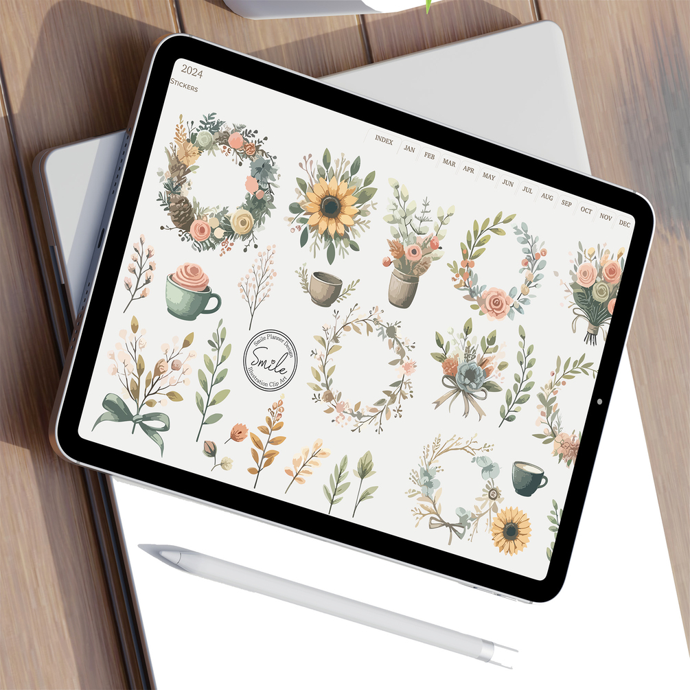 Pastel Flower Wreaths Designer Clip Art Hand Drawn Watercolor PNG Digital Planner GoodNotes Stickers illustration Wall Art